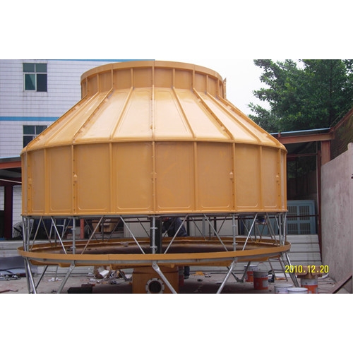 所謂冷卻水塔顧名思義即是應(yīng)用于散熱冷卻為目的之塔狀灑水系統(tǒng);以一般常見(jiàn)于樓頂之中小型空調(diào)用冷卻水塔而言,其結(jié)構(gòu)不外乎一圓型或方形殼體,而殼體內(nèi)由上而下分別為一抽風(fēng)馬達(dá)及帶動(dòng)之抽風(fēng)扇,擋水板,撒(散)水器,散熱材(填充材),入風(fēng)口,最底下為水槽、進(jìn)出水管及抽水馬達(dá),其功能為將空調(diào)主機(jī)所吸收或產(chǎn)生之熱能經(jīng)由冷卻水的傳送在冷卻水塔中藉由水與空氣的直接接觸將熱能排放至大氣中。由于水具有高潛熱(蒸發(fā)熱)熱能,加上取得容易,而空氣具有吸濕能力,在這種有利條件下,冷卻水塔成為散熱最有效且最便宜的工具。